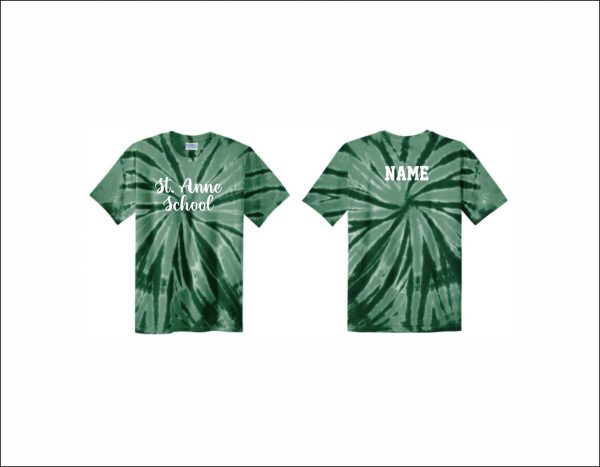 St. Anne School – Short Sleeve Tie Dye T-Shirt (Forest Green) with logo on front