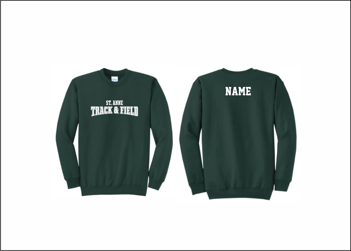 St. Anne Track & Field -Crewneck Sweatshirt (Dark Green) with logo on front