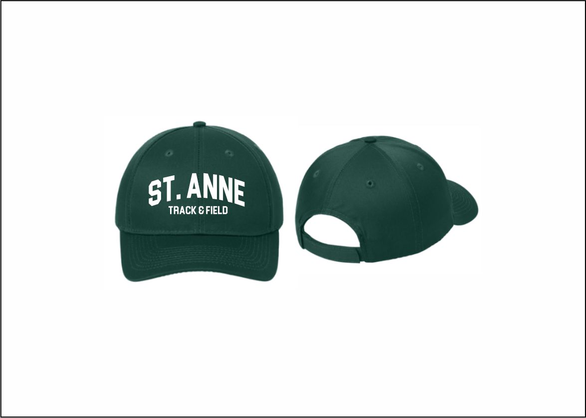 St. Anne Track & Field – Adjustable Cotton Twill Hat (Forest Green) with embroidered logo on front