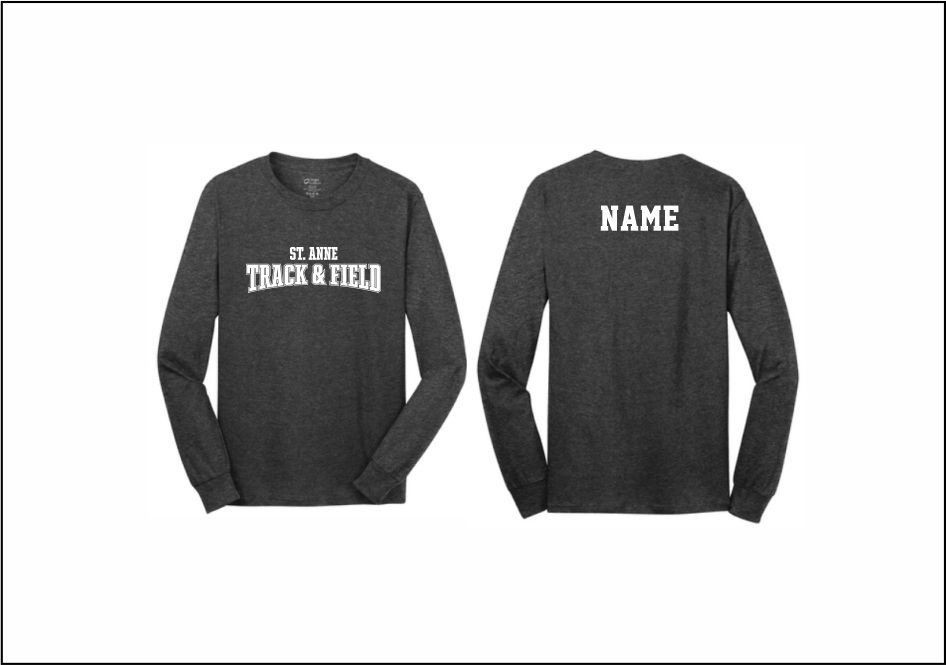 St. Anne Track & Field – L/S Cotton T-Shirt (Dark Gray) with logo on front