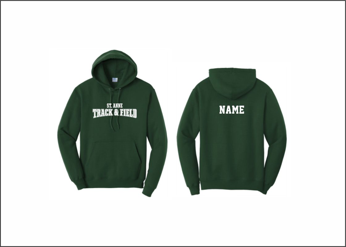 St. Anne Track & Field – Hooded Sweatshirt (Dark Green) with logo on front