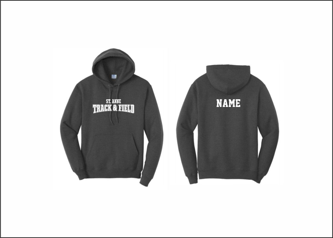 St. Anne Track & Field – Hooded Sweatshirt (Dark Heather Gray) with logo on front