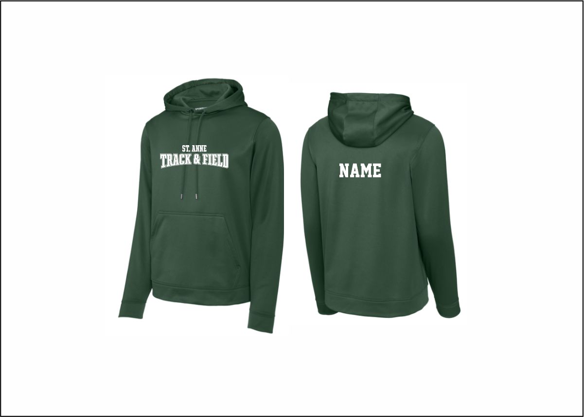 St. Anne Track & Field – Hooded Performance Sweatshirt (Forest Green) with logo on front
