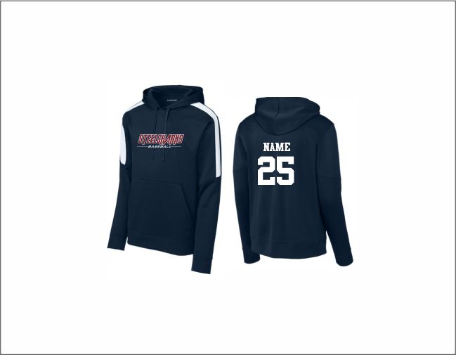 Steelsharks – Performance Hooded Sweatshirt (Navy/White) with logo 2 on front