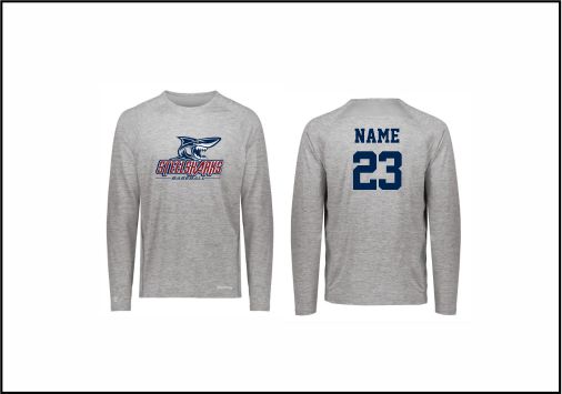 Steelsharks Baseball – Long Sleeve Performance Shirt (Gray Heather) with screened logo on front LOGO 1