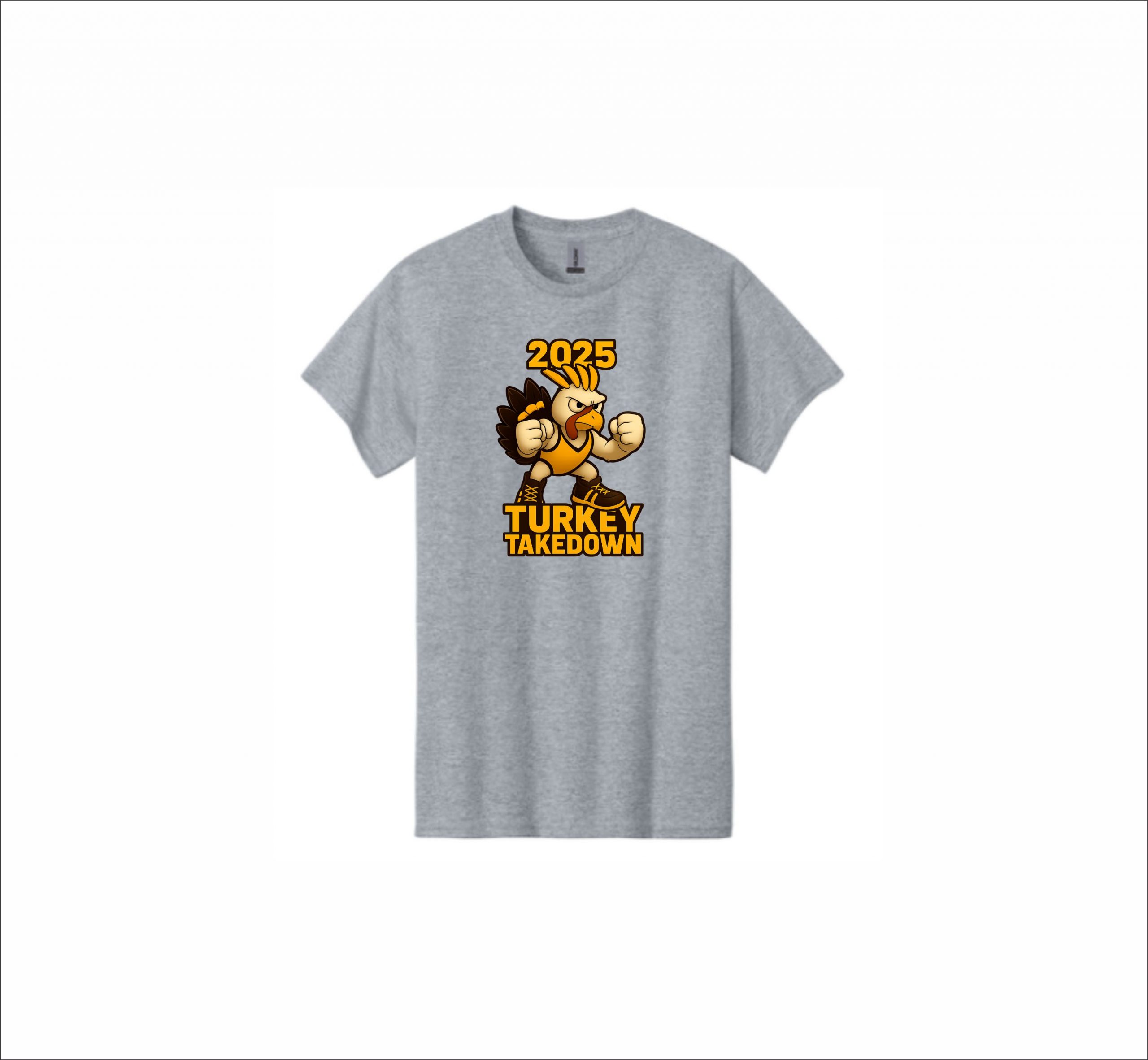 Turkey Takedown – Short Sleeve Cotton T-Shirt (Gray) with logo on front