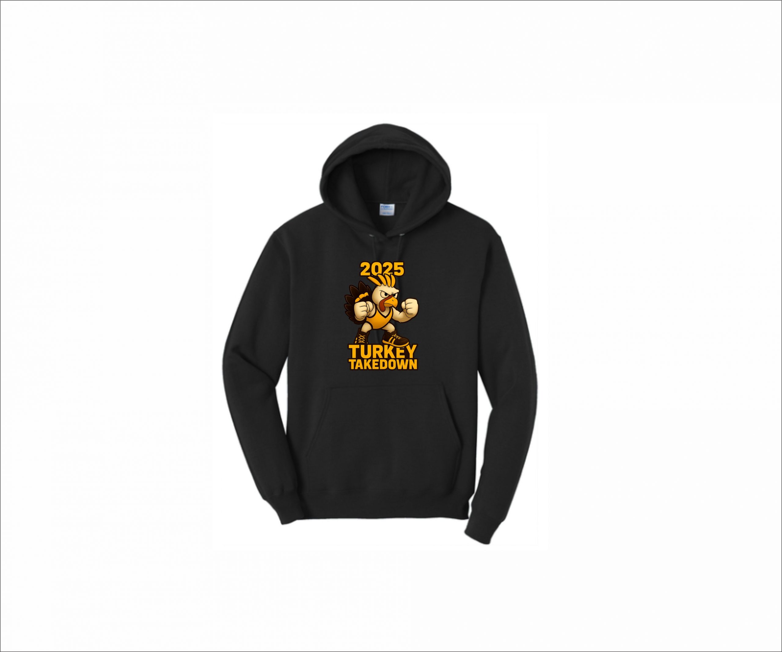Turkey Takedown – Hooded Sweatshirt (Black) with logo on front