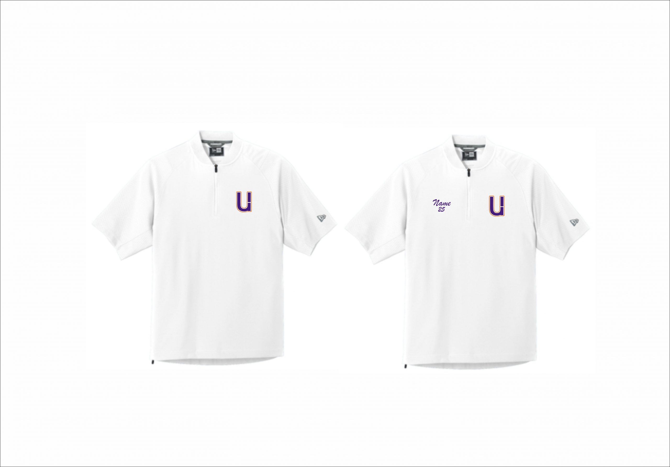 Unity Softball – 1/4 Zip Short Sleeve Cage Jacket (white) with embroidered left chest logo
