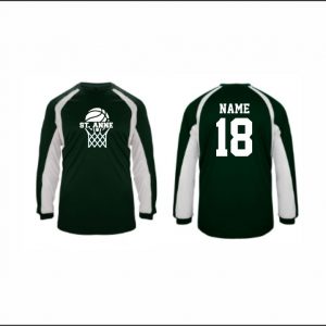 St. Anne Basketball – 31. Long Sleeve Performance Shirt (Forest Green/White – Logo #2)